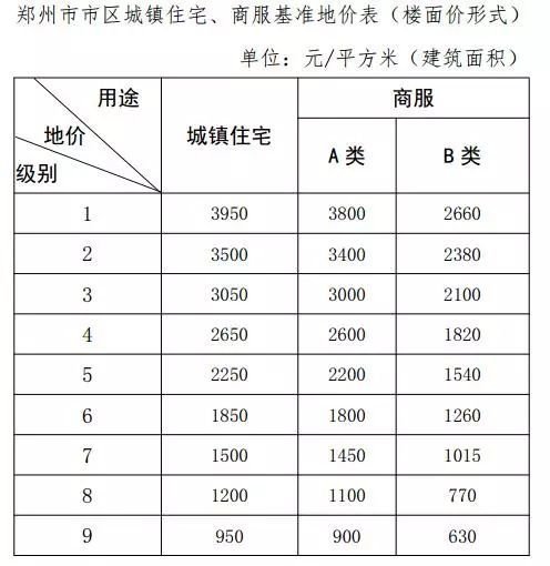 郑州市土地级别与基准地价出炉!住宅用地3950元/㎡
