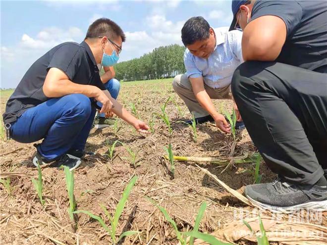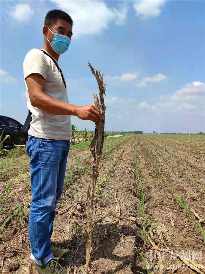 记者随着他手指的方向放眼望去,一大片田地里争先恐后冒出头的成排绿意,与地边已经绝收的零星玉米株形成鲜明对比。