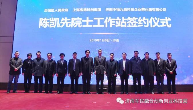 1月8日,济南军民融合创新创业科技园陈凯先院士工作站签约仪式成功举办。本次活动由历城区人民政府主办,历城区唐冶街道办事处、历城控股集团协办,济南中物九鼎科技企业孵化器有限公司承办。本次活动共吸引近80余家企业的100余位企业代表参加。 历城区委副书记、区长刘科接待了中国科学院院士陈凯先,参加